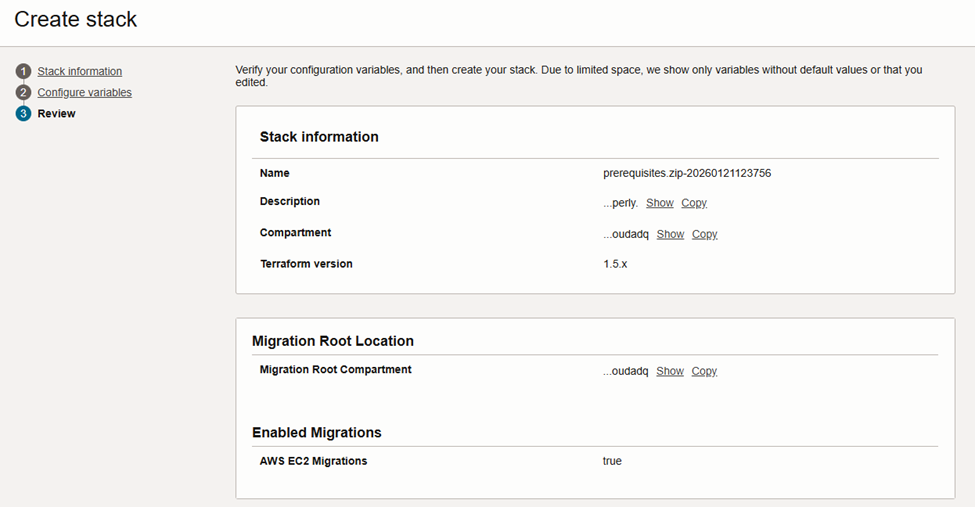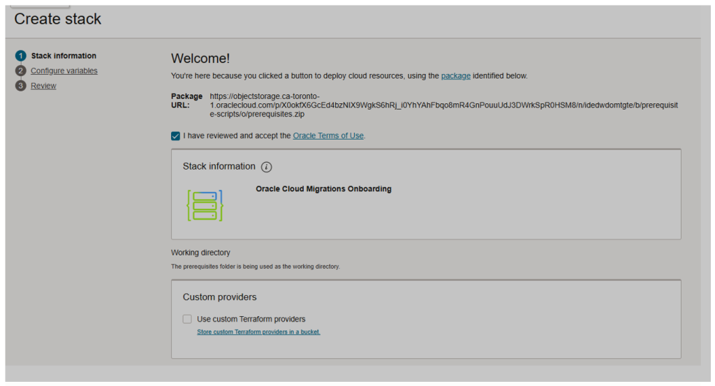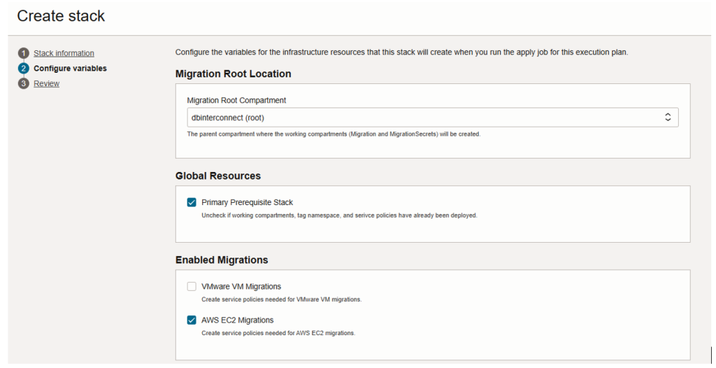 Deploy and configure the Oracle Cloud Migration Stack in your OCI tenancy.