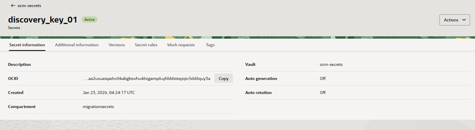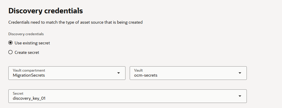 On the OCI side, you need to create a Vault and store the Discovery key inside it.