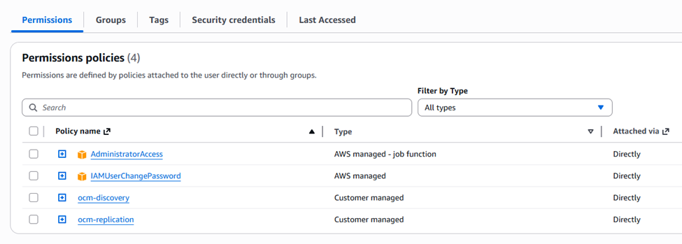 These policies grant the necessary permissions for both discovery and replication of your AWS resources. Make sure they are attached to the IAM user that will be used for the migration process.