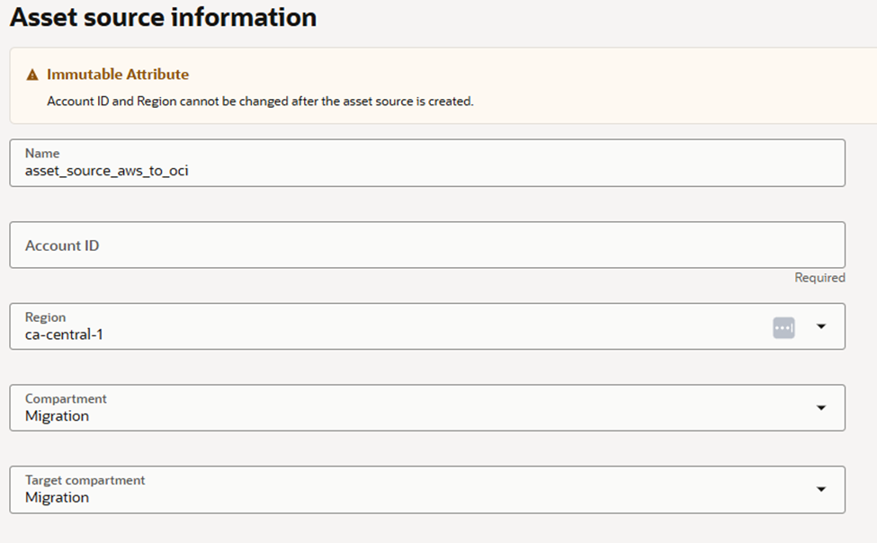 OCI Compartment – The target compartment in OCI where the discovered assets and migration resources will be managed.
